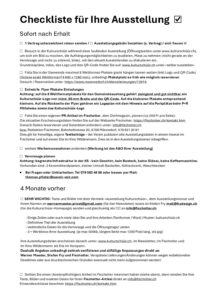 ↓ Unsere Checkliste und die Bedingungen zum downloaden. Alle wichtigen Infos für Ihre Ausstellung. Einfach anklicken und herunterladen.
